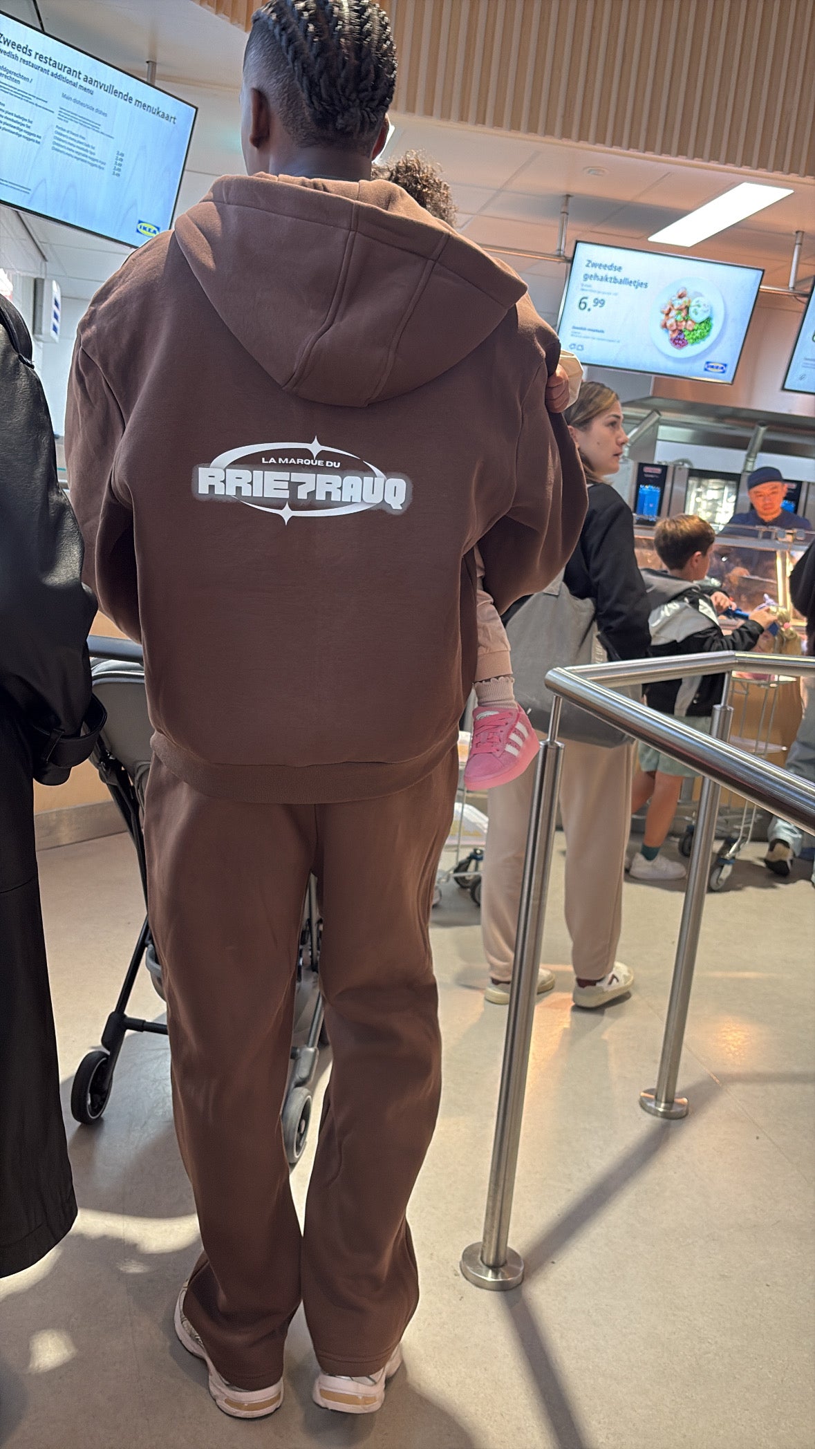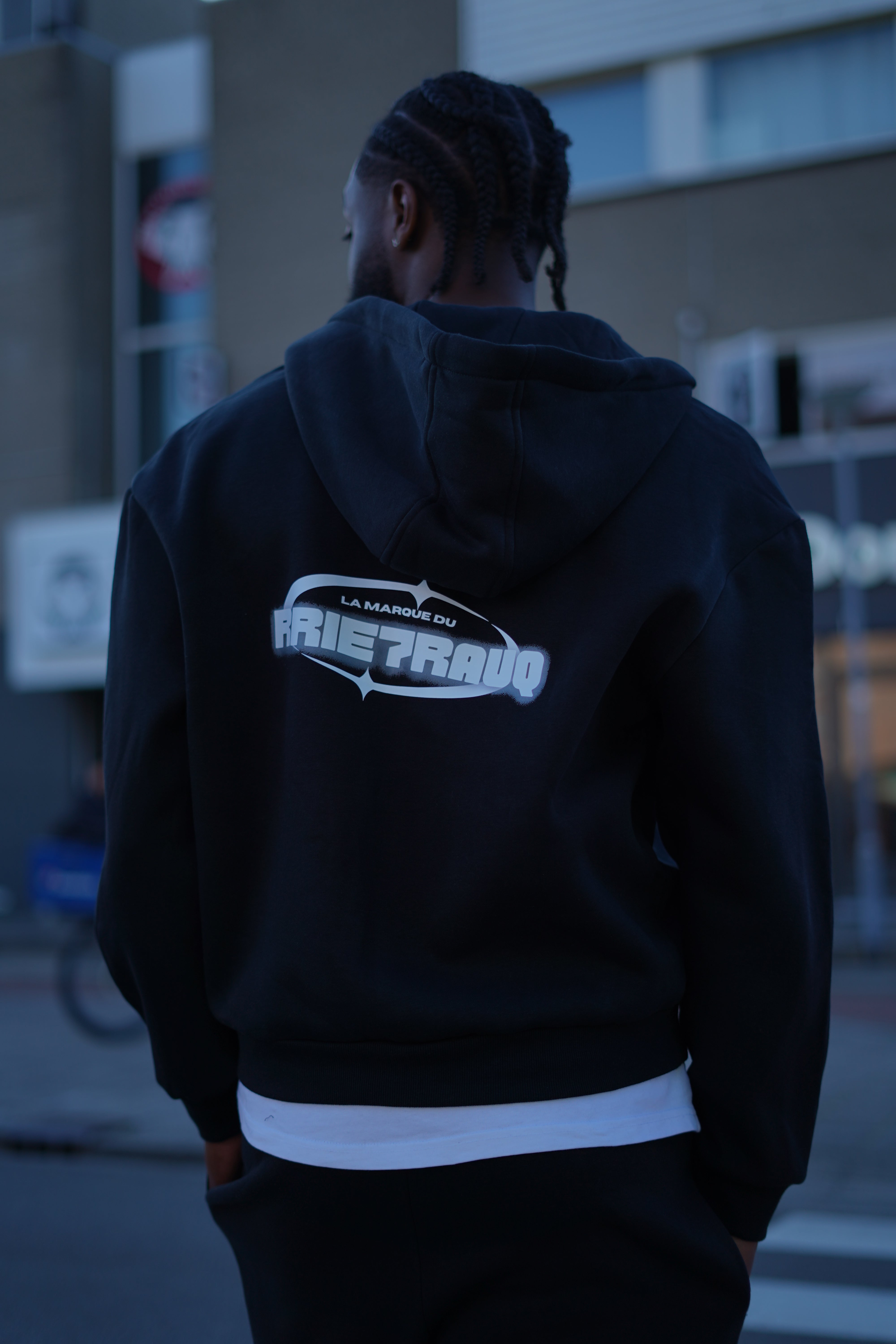 THE ZIPPER HOODIE AND LOOSE FIT PANTS ARE MADE OF HIGH SOFT QUALITY MATERIALS. THE TRACKSUIT IS FINISHED WITH OUR RRIE7RAUQ LOGO ON THE FRONT AND ' LA MARQUE DU RRIE7RAUQ ' PRINT ON THE BACK.